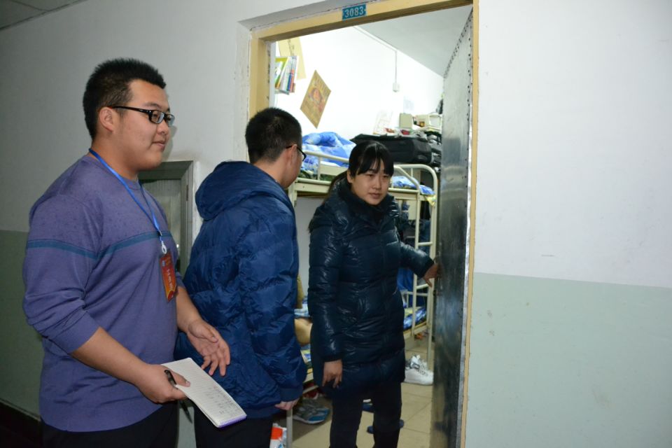 2014年12月10日晚,机电工程公司党委副书记刘光老师,团委书记王宇鹏老师,员工科科长张丽花老师,员工科段雪倩老师、李晓彧老师、杨博炜老师、祁亚芳老师带领生活部人员对员工宿舍进行了检查,各宿舍情况良好,查寝结果也令人满意,特此通报。
